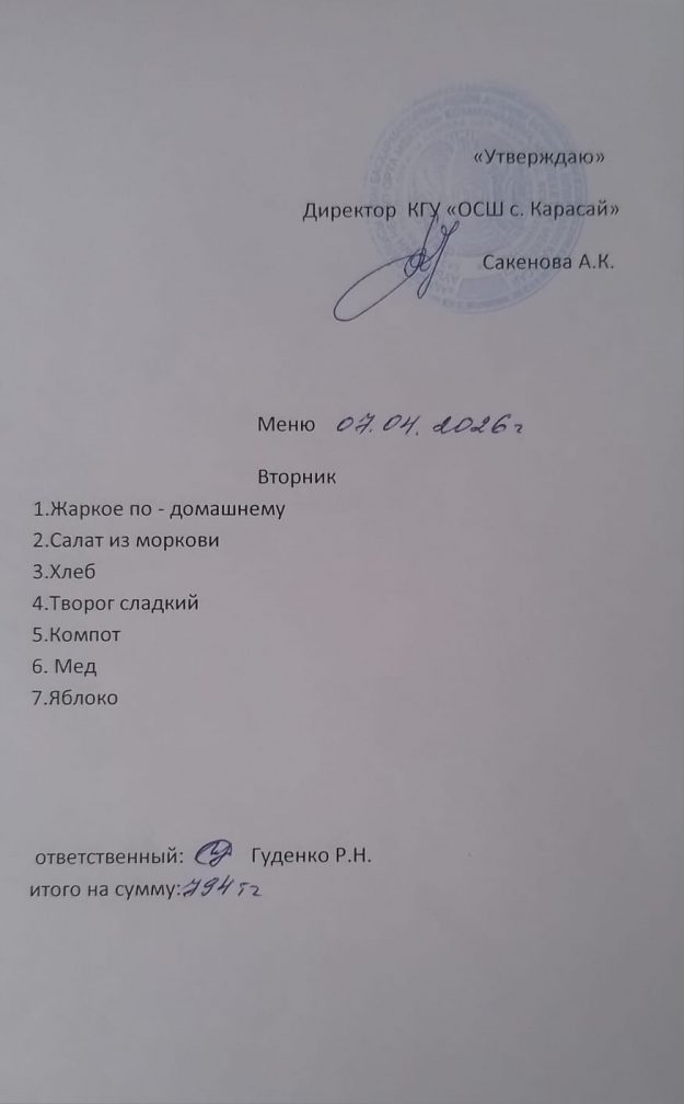 Мәзір 8.09.2025